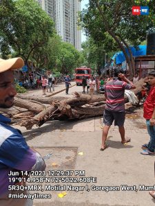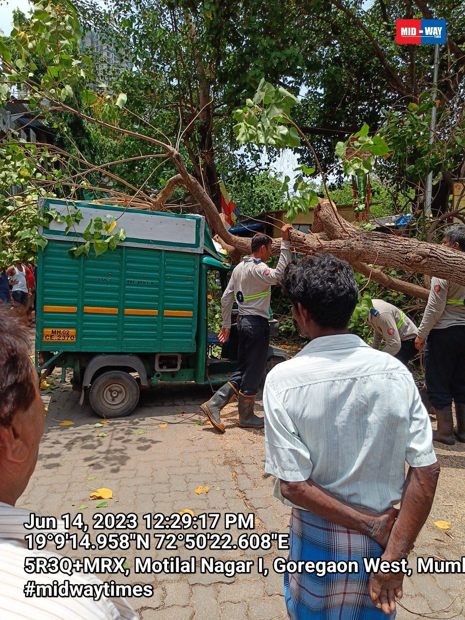 *Tree falls on tempo in Goregaon West, one woman injured*